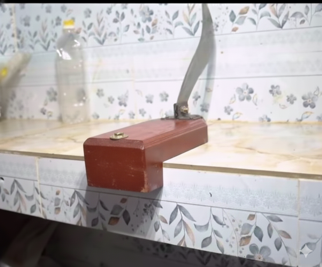 - Sharpened spring steel blade (ধারালো স্প্রিং স্টিল ব্লেড)